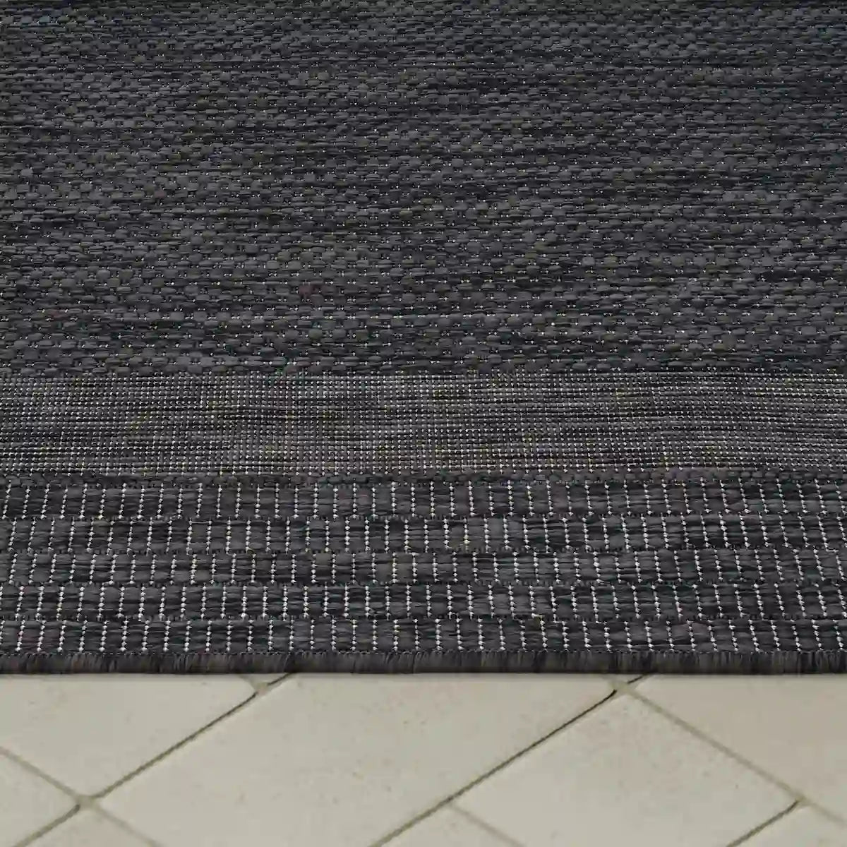 Bring balance and naturalness to your interior or exterior with the Bamaro Natural Rug. A flat-woven anthracite rug, discreet and easy to integrate.
