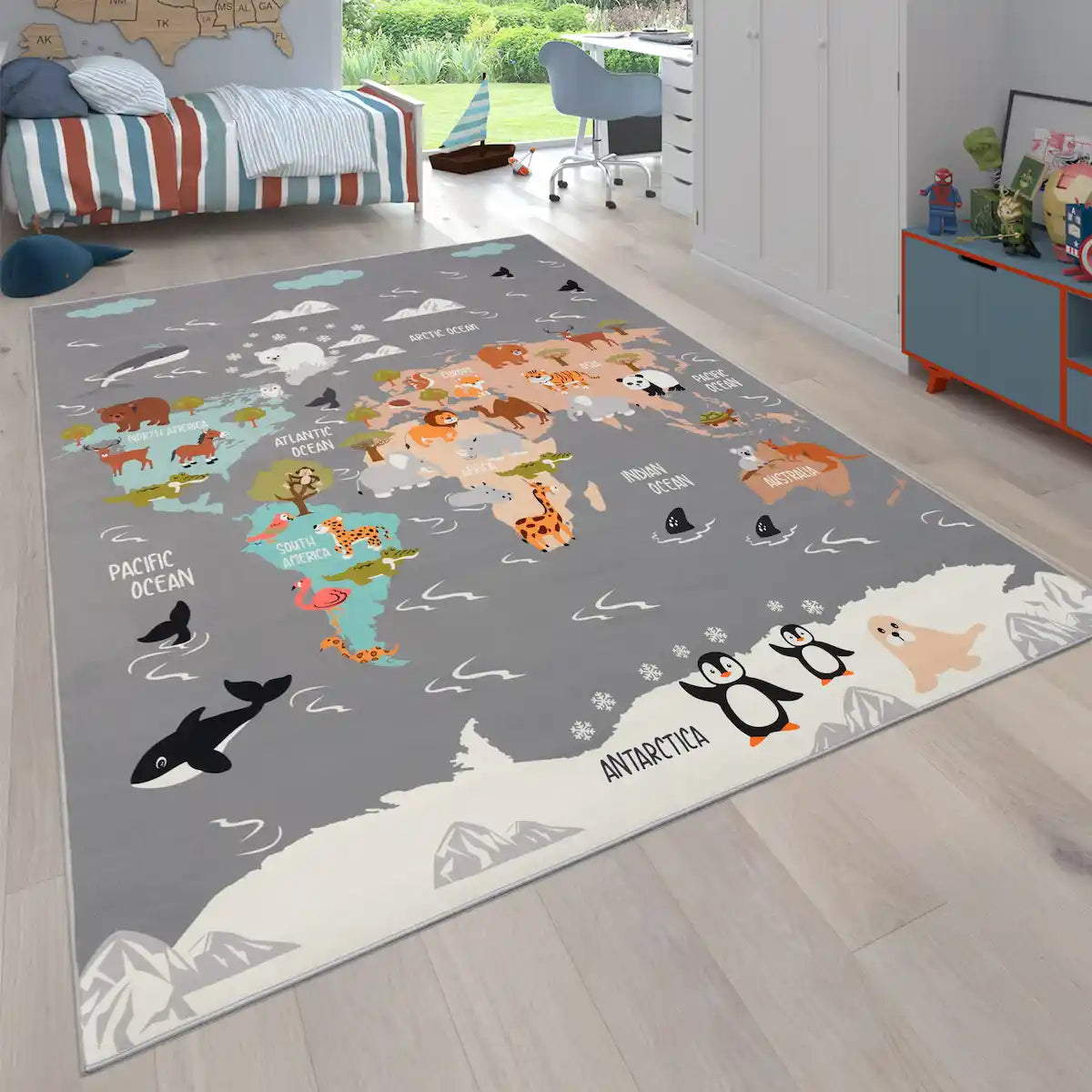 Designed to spark curiosity, this playful rug stimulates the imagination while promoting animal awareness.