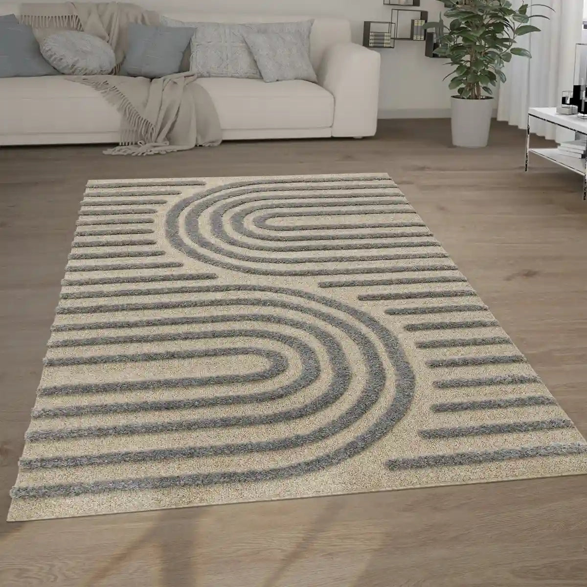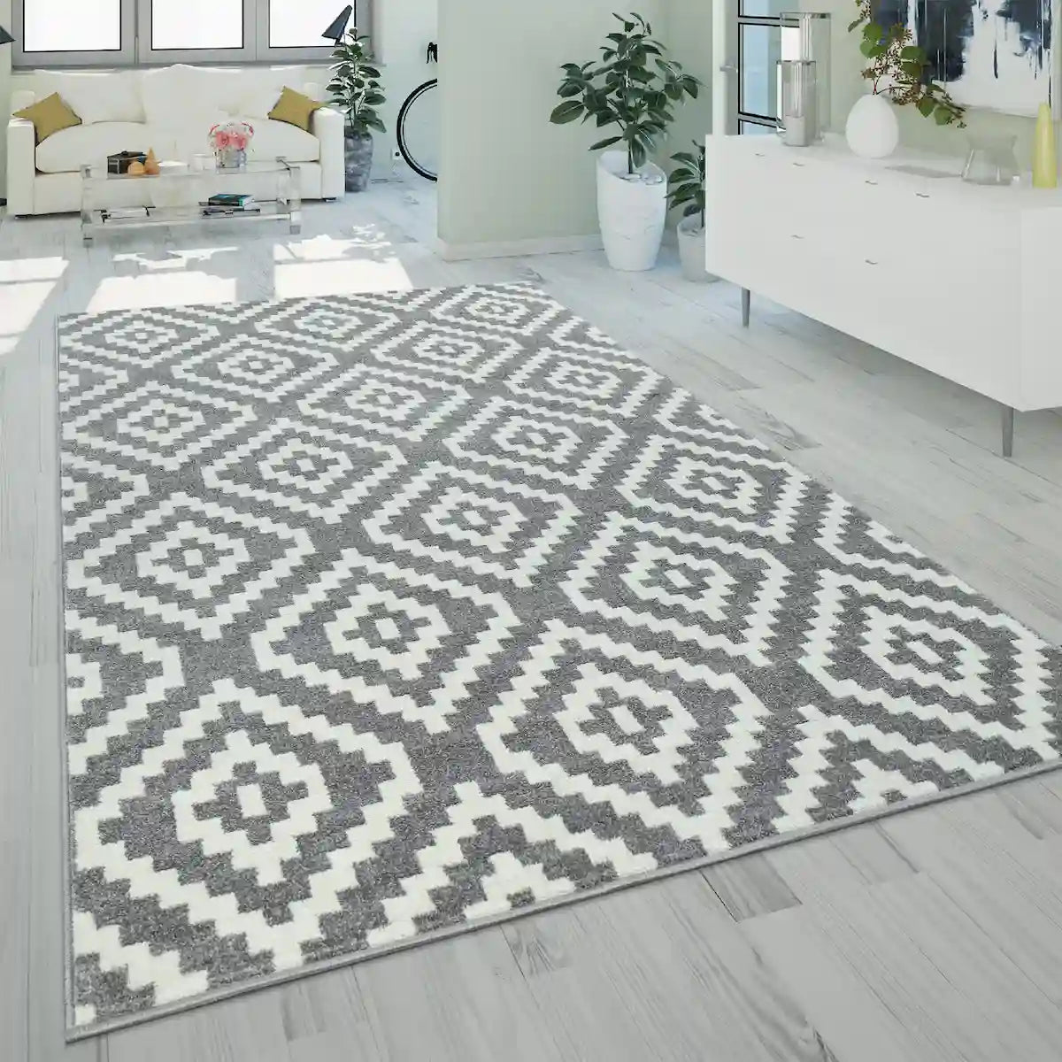 For living room (or large room) ➔ Choose a rug that is large enough (from 160x230 cm, 200x280 cm and more). Place it in front of the sofa or in the center to create a warm and well-structured atmosphere.