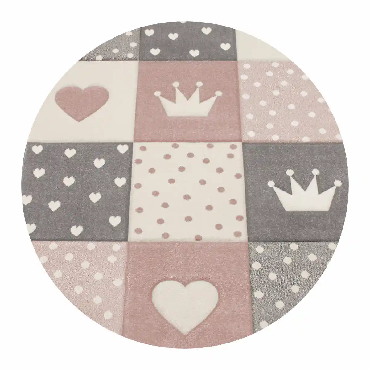 This round children's rug creates a safe play area, pleasant to the touch and visually soothing.