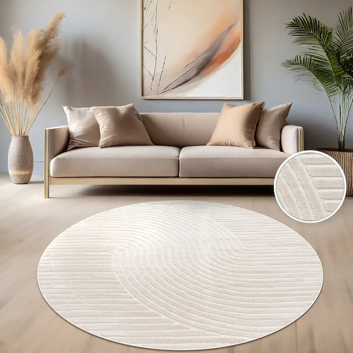 With its timeless design and neutral tones, this soft round rug easily blends into any decor style.