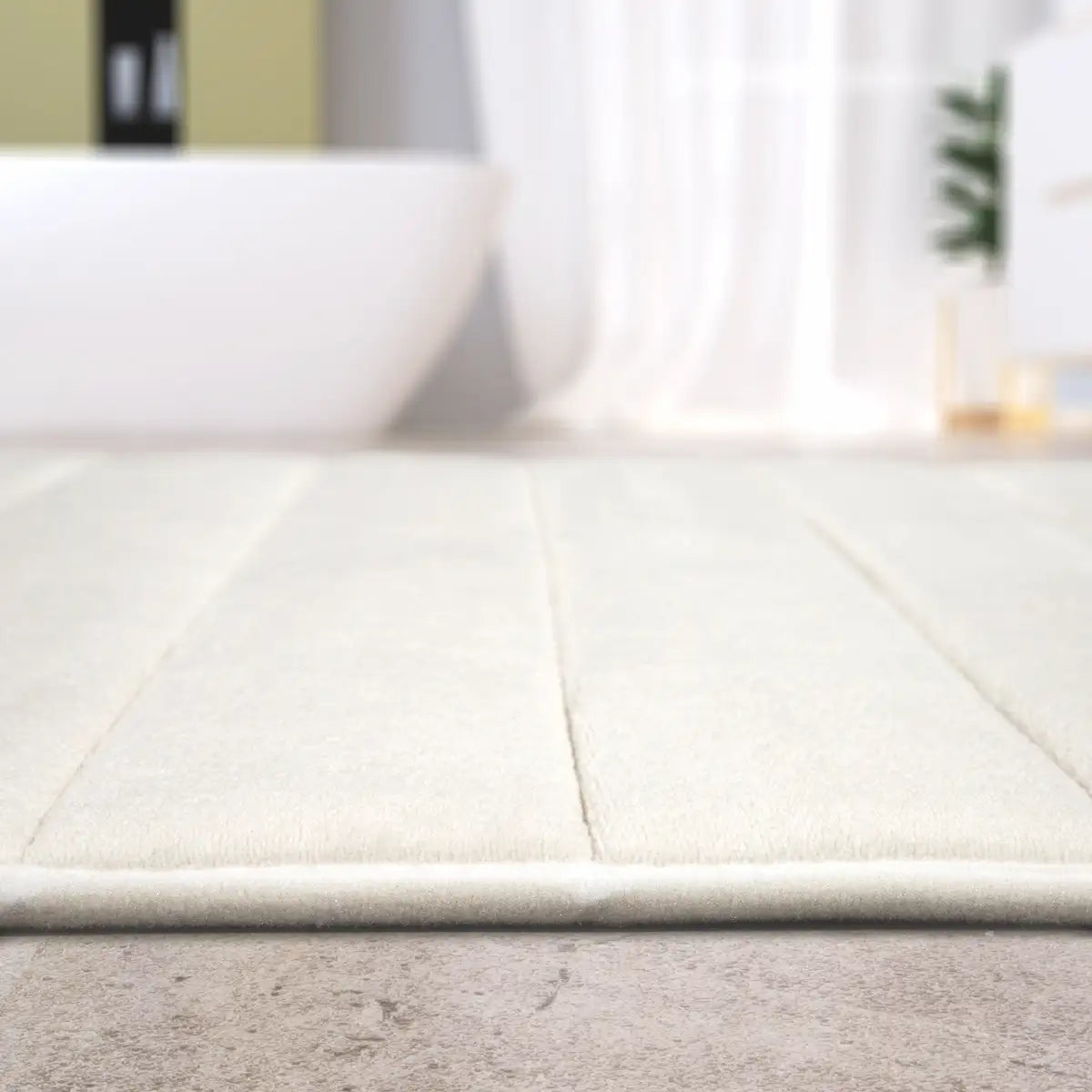 Available in beige, cream, gray, and anthracite, this bathroom rug blends perfectly with any decor.