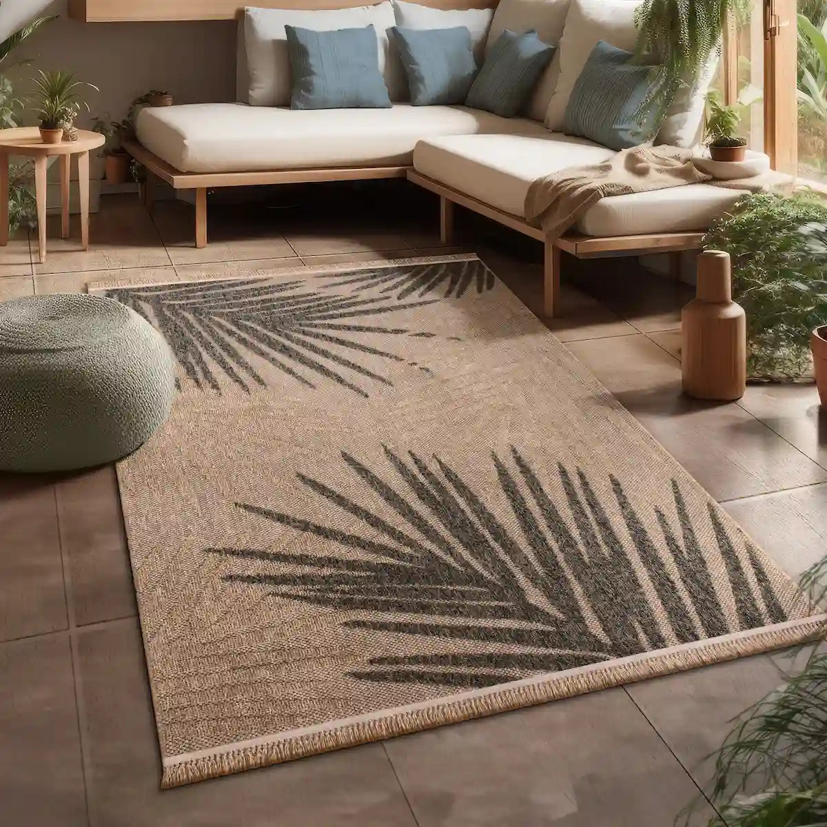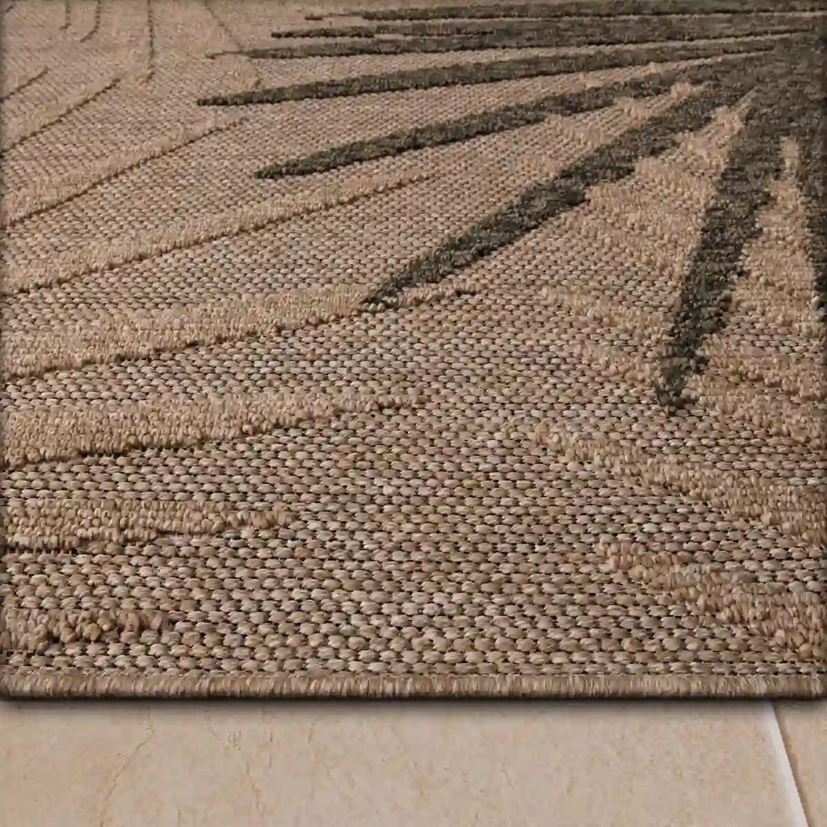 Create a serene, tropical atmosphere with the Vango Natural Rug. A natural rug with a leaf pattern, perfect for indoors or on the balcony.